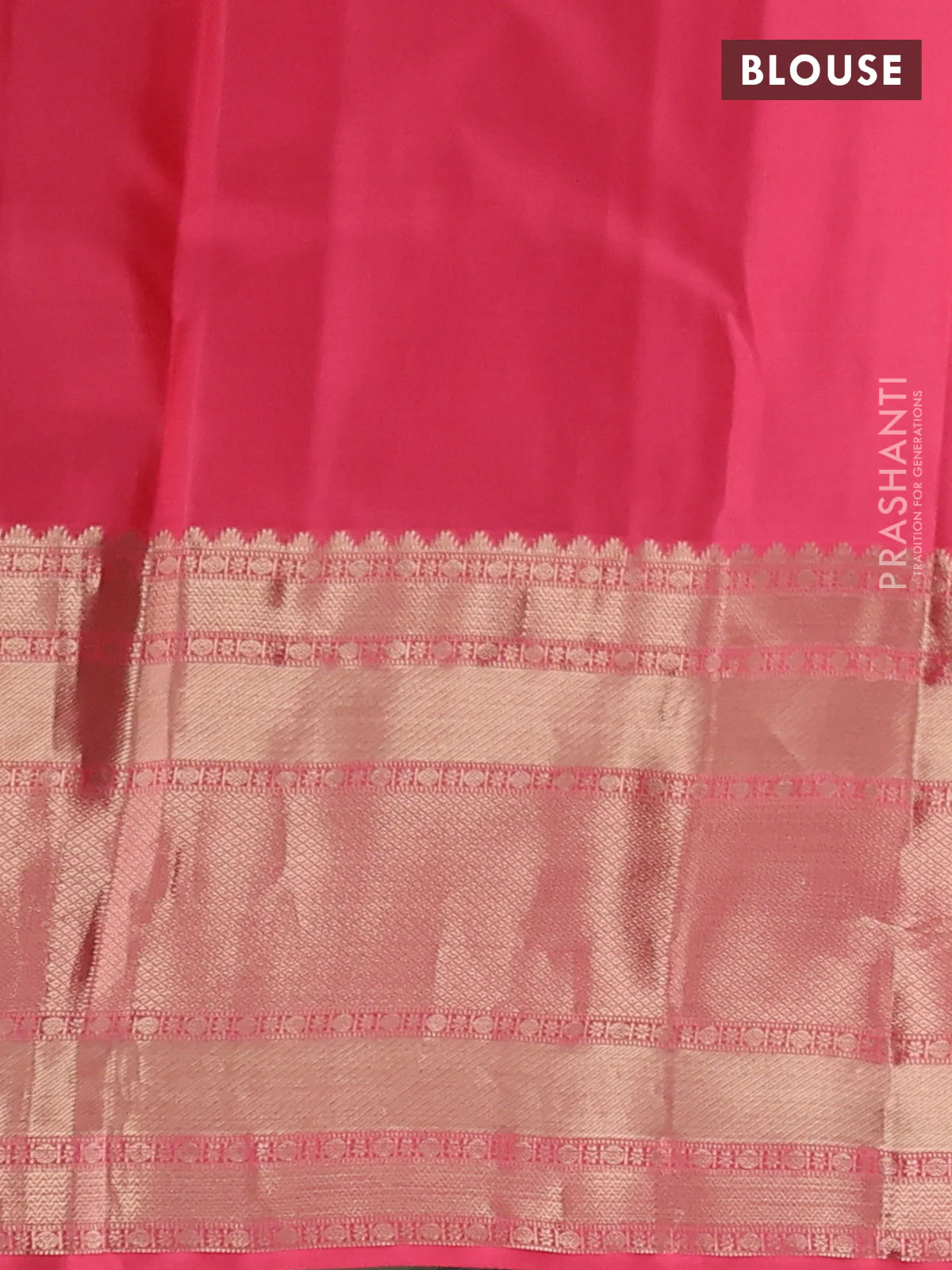 Pure kanchipuram silk saree bottle green and peach pink with allover zari weaves and long zari woven border