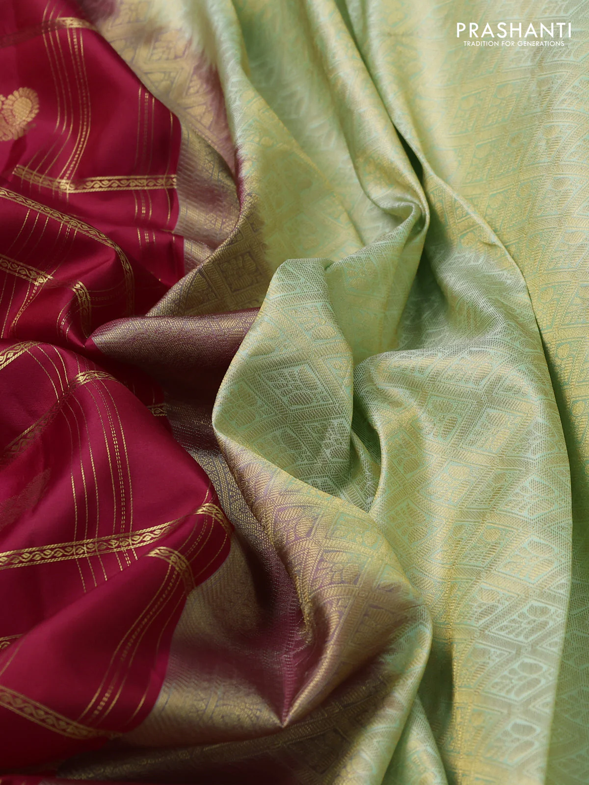 Pure kanchipuram silk saree red and pista green with allover zari checks & buttas and rich zari woven korvai border