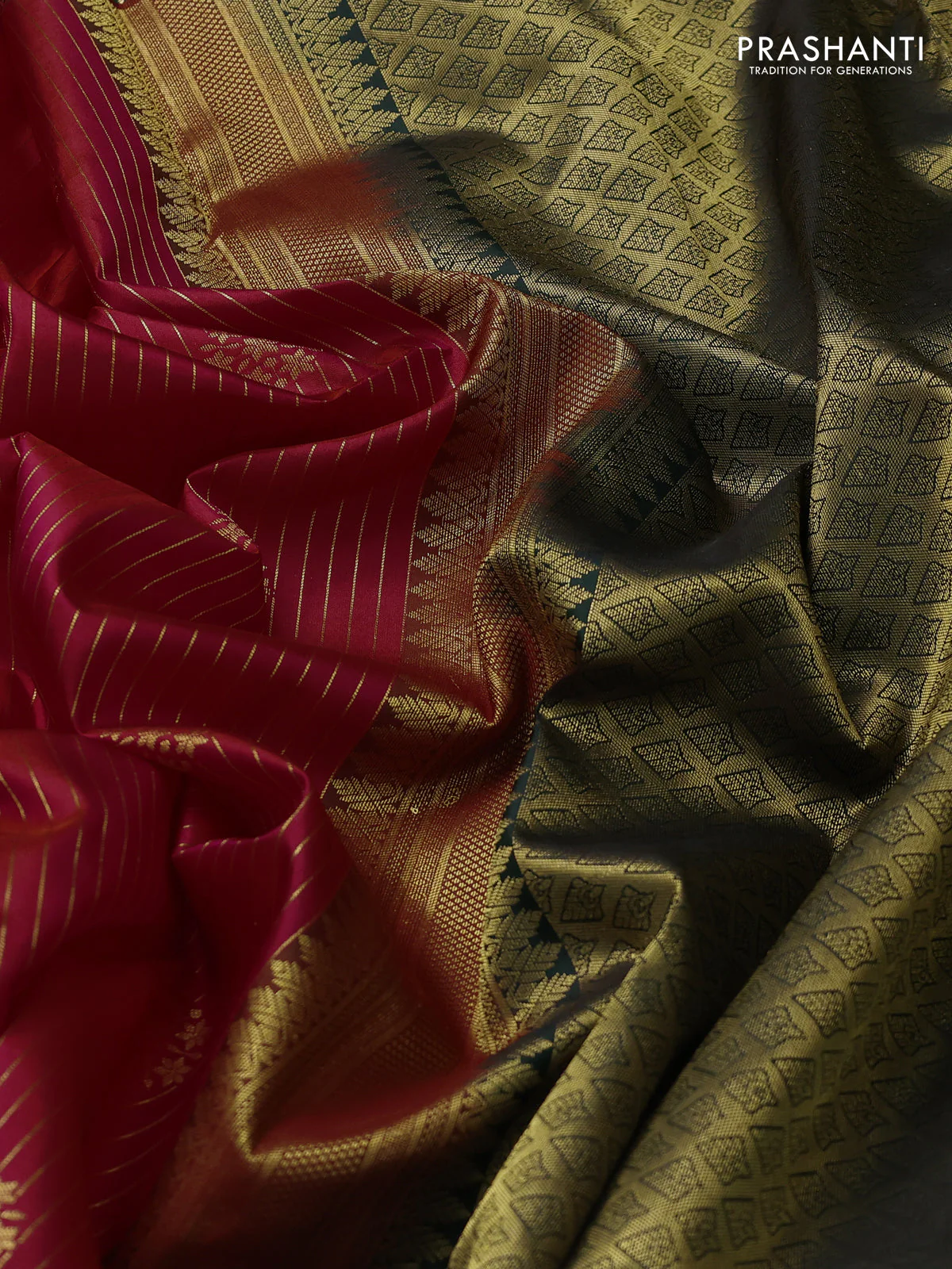 Pure kanchipuram silk saree reddish pink and bottle green with allover zari weaves & buttas and rich zari woven border