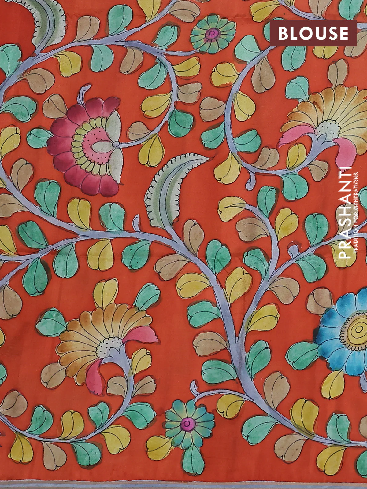 -70%Pure soft silk saree pastel green and orange with plain body and kalamkari hand painted border & pallu—