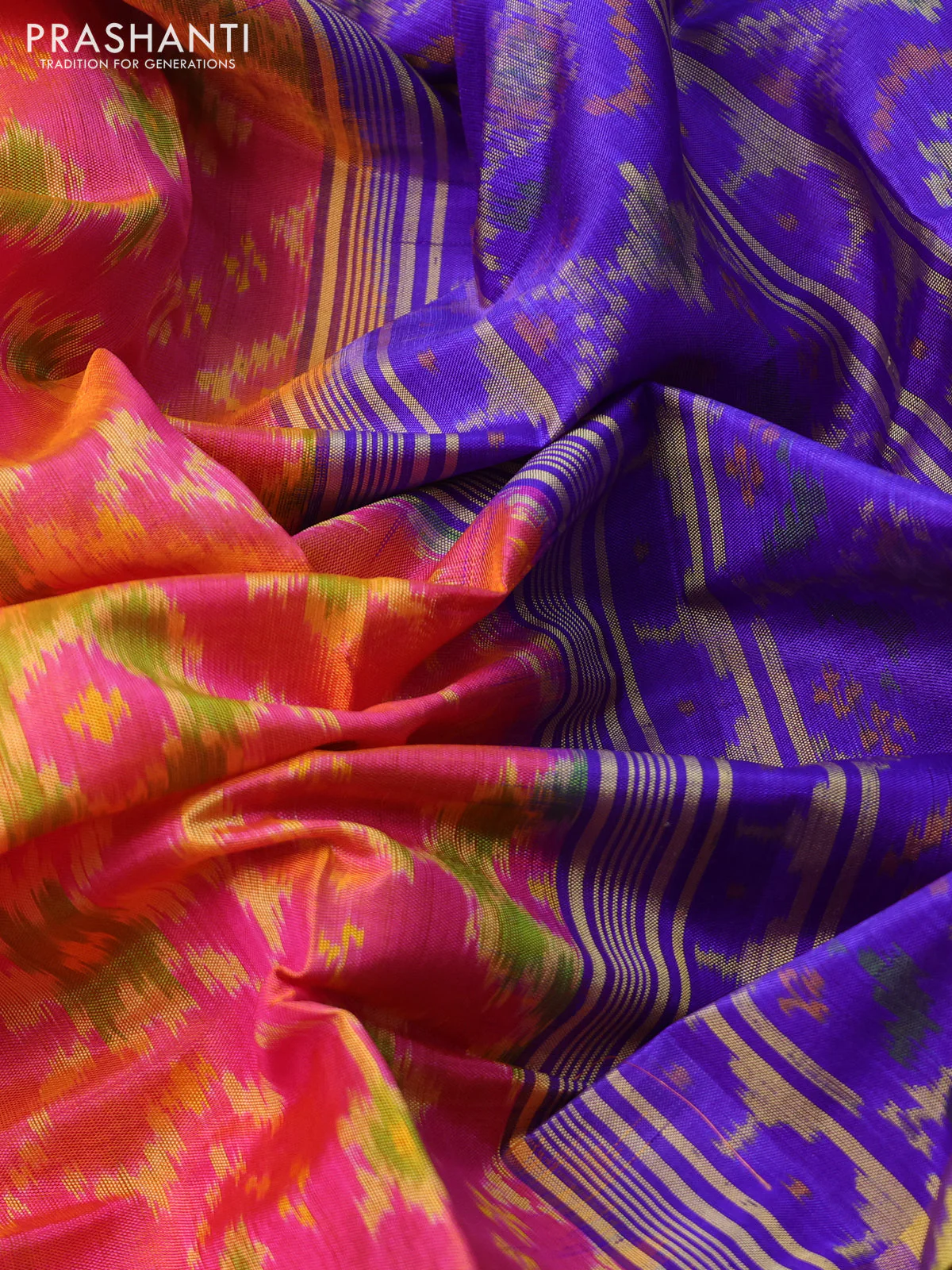 Rajkot patola silk saree dual shade of pink and blue with allover ikat weaves and long zari woven border