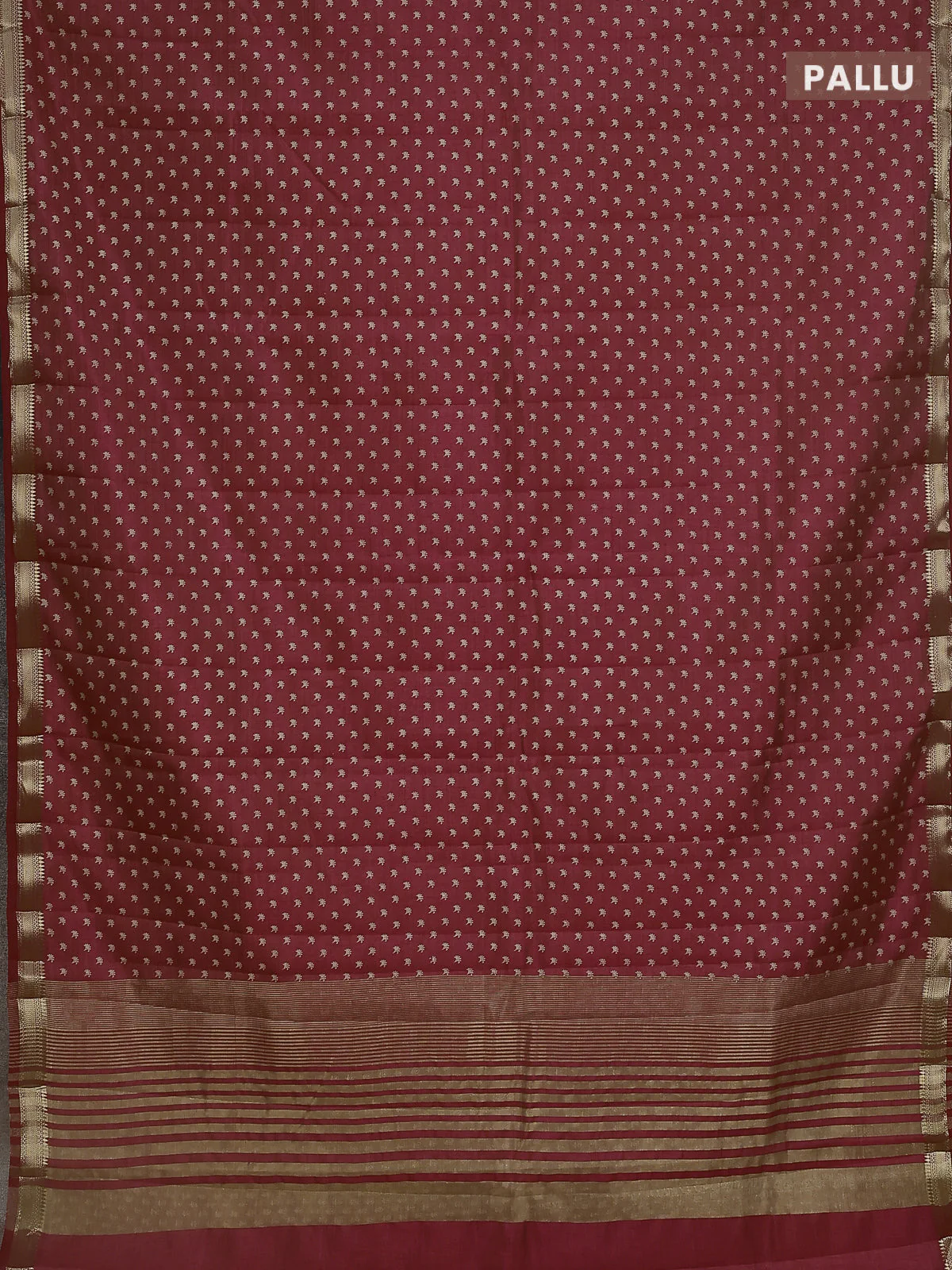 Semi raw silk saree maroon with allover butta prints and zari woven border
